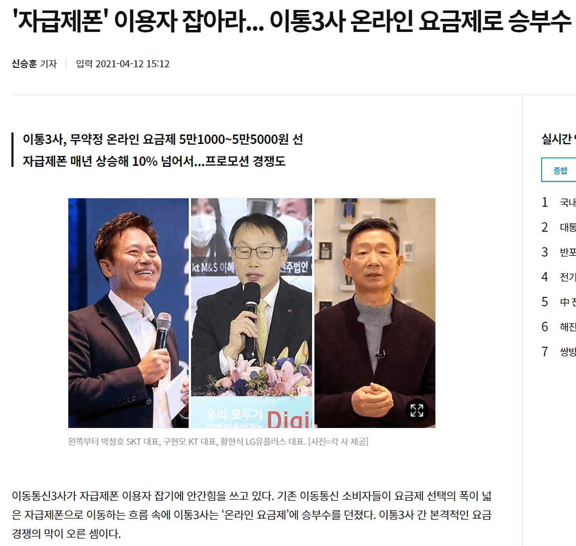 또한 자급제폰을 구매하여 이동통신 3사를 이용할 경우, 무약정 온라인 요금제를 선택하여 할인된 요금제를 선택할 수 있습니다.